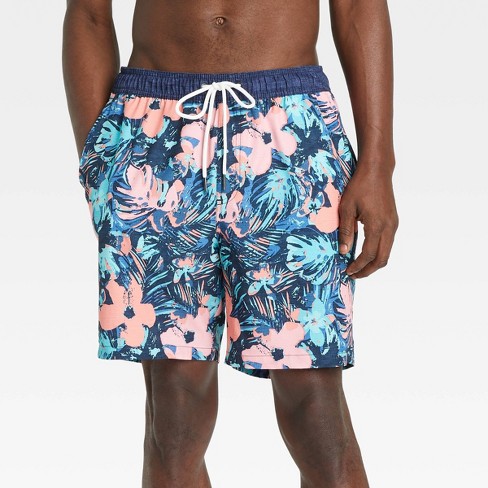 Men S 7 Floral Swim Trunk With Boxer Brief Liner Goodfellow Co Pink Target